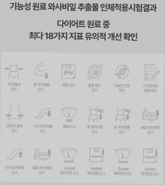 - 체지방 감소: 와사비 잎 추출물은 체지방을 분해하고 감소시키는 데 도움을 줍니다.