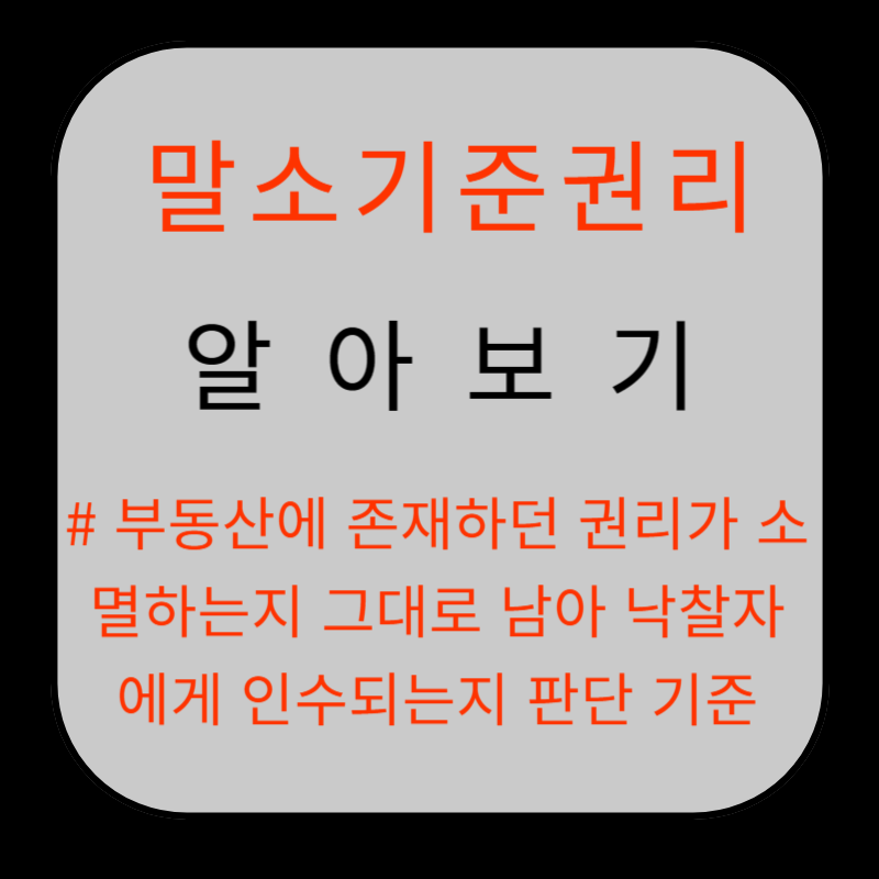 경매부동산에 대한 권리를 분석하기 위해서는 우선 말소기준권리가 무엇인지 파악하여야 합니다. 말소기준권리란 그 권리 자체는 낙찰 후 배당이 완료되면 소멸하지만, 그 권리를 기준으로 하여 등기사항증명서에 먼저 설정된 권리나 부동산 상에 먼저 성립된 권리로서 전입신고한 임차인은 소멸하지 않고 낙찰자에게 인수되며, 나중에 설정된 권리들은 낙찰 후 말소기준권리와 함께 소멸하게 됩니다. 다시 말하면 부동산 경매에서 목적 부동산이 낙찰되는 경우, 그 부동산에 존재하던 권리가 소멸하는지 아니면 그대로 남아 낙찰자에게 인수되는지 판단하는 기준이 되는 권리를말소기준권리라고 합니다. 말소기준권리에는 근저당권, 강제경매개시결정기입등기, 가압류등기, 담보가등기 등이 해당되며, 이러한 권리 중 등기사항증명서에 제일 먼저 설정된 권리가 말소기준권리가 됩니다. 참고로 유치권과 예고등기는 말소기준권리와 무관하여 낙찰자에게 무조건 인수된다는 점을 주의하여야 합니다.